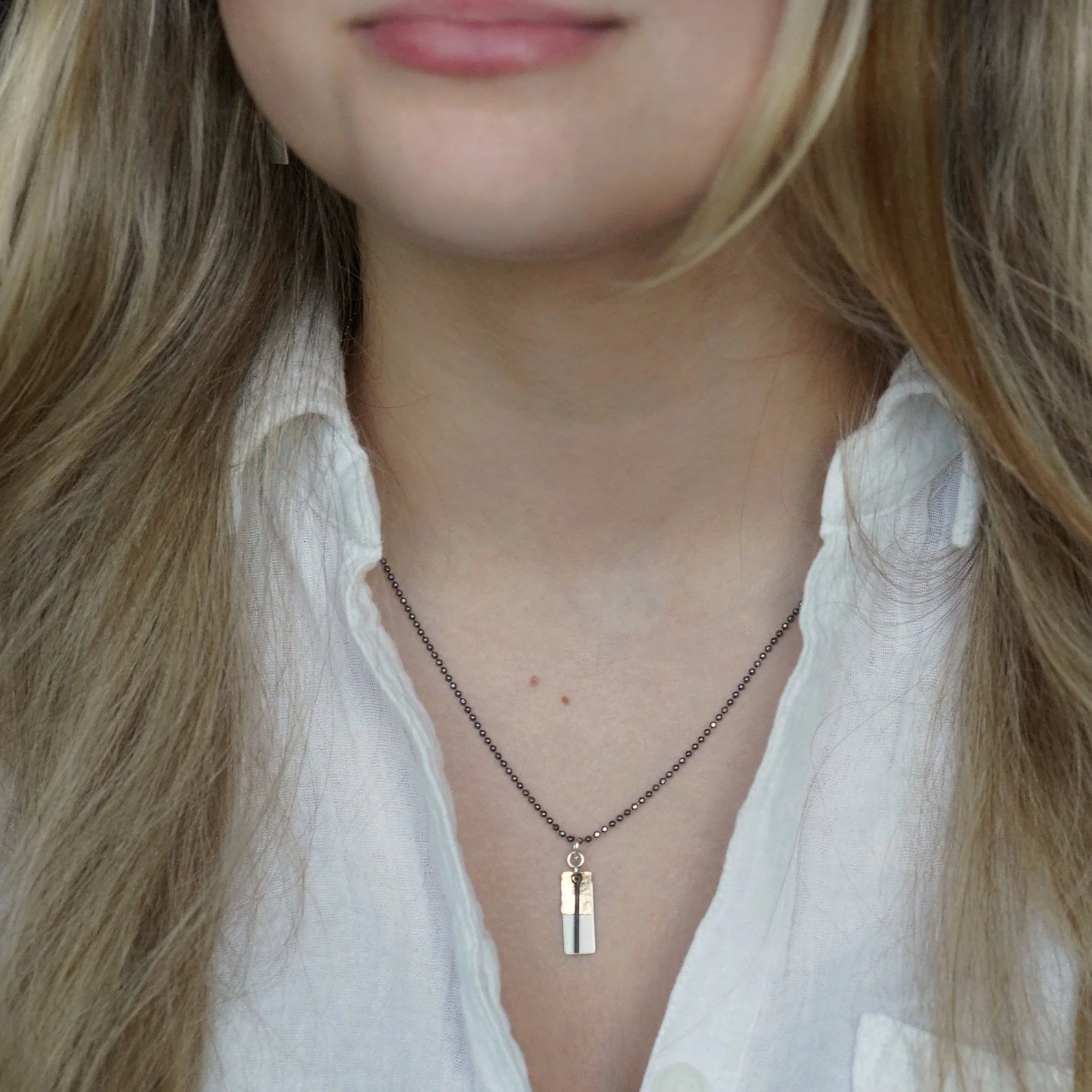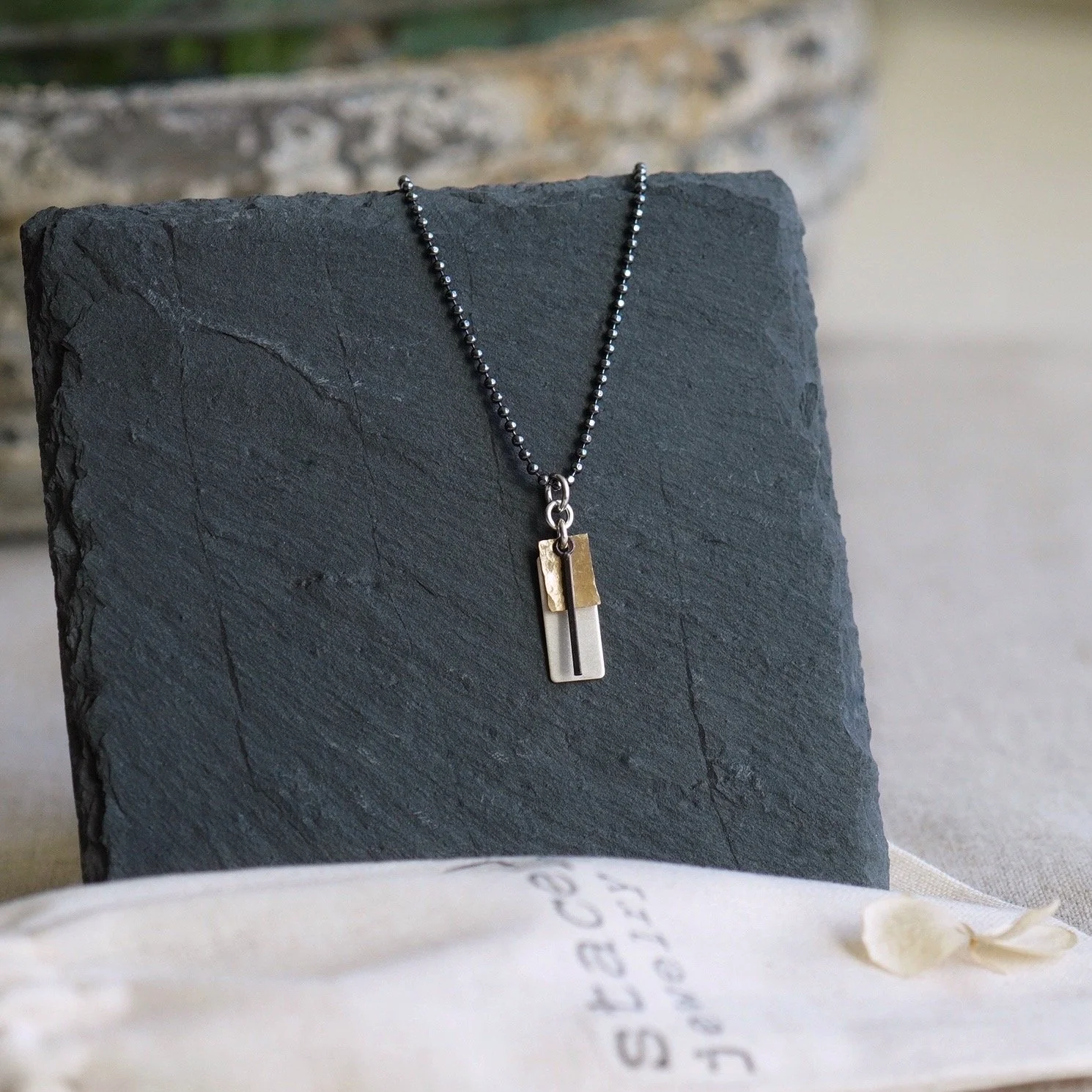 RETIRED NECKLACE › Land of the Midnight Sun Image 1 of 4 Image 2 of 4 Image 3 of 4 Image 4 of 4 Land of the Midnight Sun $52.00 Hand-hammered oxidized sterling silver coupled with dainty 14k gold fill chain.LENGTH: 20 inches Get notified by email when this product is in stock. Sign up to receive news and updates. Add To Cart Added! Hand-hammered oxidized sterling silver coupled with dainty 14k gold fill chain.LENGTH: 20 inches Reviews Reviewer Name Review Date Star Rating Description Posted on Etsy Product Show More You Might Also Like Opposites Attract $49.00